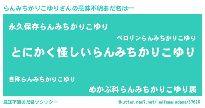 | 女子向けラノベタイトル風あだ名 | 『らんみちかりこゆりの卵を拾いまして』 |