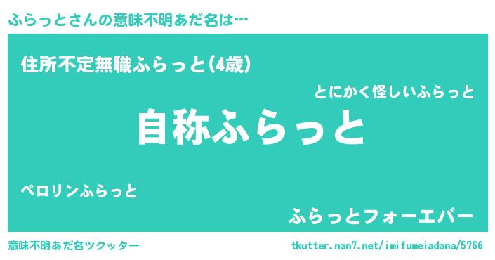 | 男性向けラノベタイトル風あだ名 | 『Re:ふらっとから始める異世界生活』 |