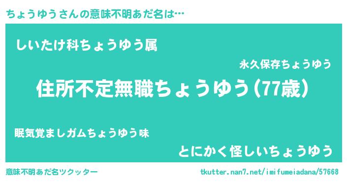 | ヘコむあだ名 | 『ちょっちょ』『ちょうゆう(震え声)』 |