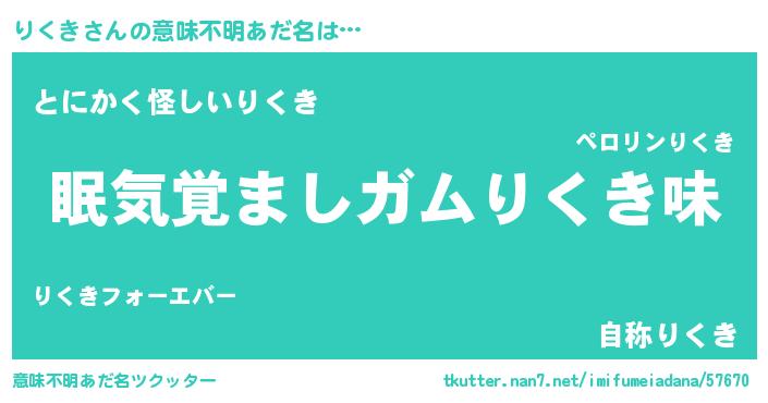 | 女子向けラノベタイトル風あだ名 | 『死神りくきの再婚』『りくき様がみてる』 |