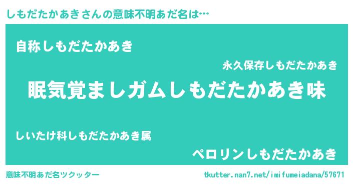 | ヒーロー風カッコイイあだ名 | 『正義の使者しもだたかあき』 |