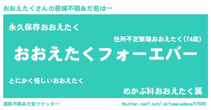 | ファンタジー風あだ名 | 『エターナルオオエタクー』 |