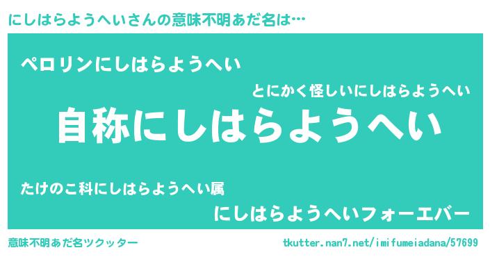 | ヘコむあだ名 | 『にしにー』『つくし』『にしぷりん』 |