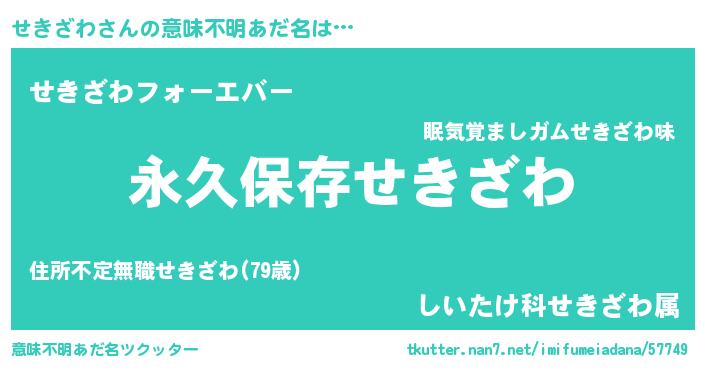 | ヒーロー風カッコイイあだ名 | 『ネオセキザワ』『ウルトラせきざわマン』 |