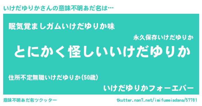 | 男性向けラノベタイトル風あだ名 | 『ダンジョンにいけだゆりかを求めるのは間違っているだろうか』 |