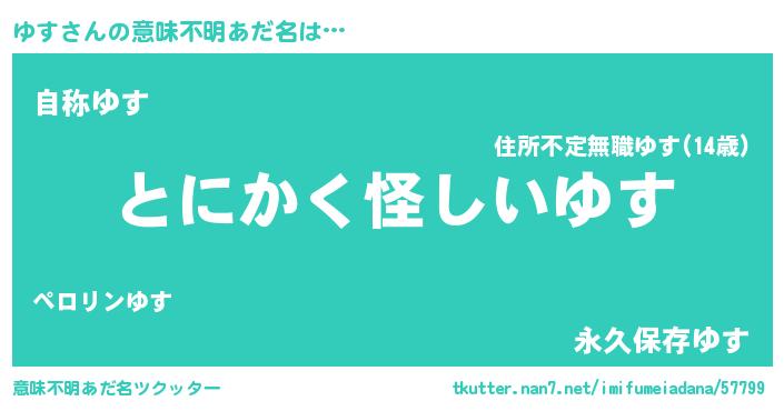 | ポケモン風あだ名 | 『ヒユス』『ユスセウス』『ゼニユス』 |