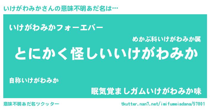 | ポケモン風あだ名 | 『ヒイケガワミカ』『イケガダネ』 |