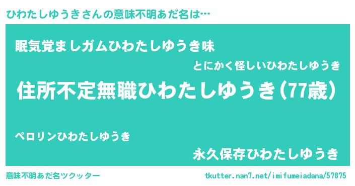 | 男性向けラノベタイトル風あだ名 | 『この素晴らしい世界にひわたしゆうきを!』 |