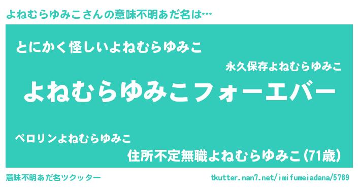 | ファンタジー風あだ名 | 『エターナルヨネムラユミコー』 |