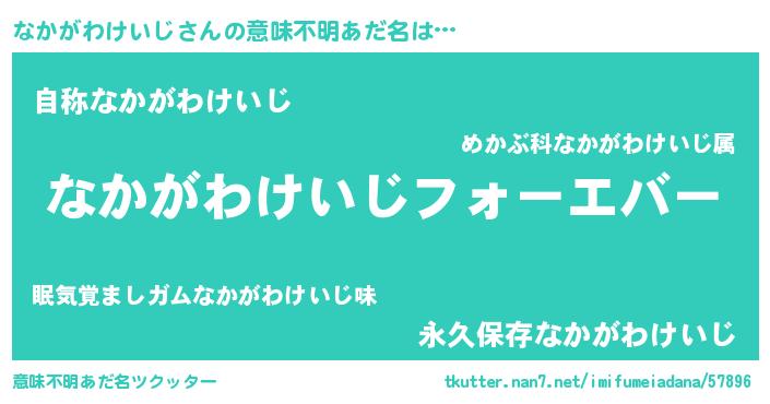 | 男性向けラノベタイトル風あだ名 | 『やはりなかがわけいじの青春ラブコメはまちがっている 』 |