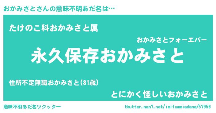 | 男性向けラノベタイトル風あだ名 | 『おかみさとという概念が存在しない退屈な世界 』 |