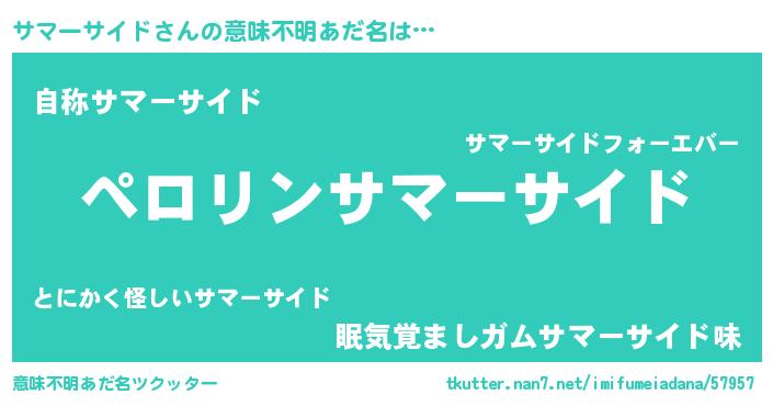 | 男性向けラノベタイトル風あだ名 | 『サマーサイドの憂鬱』 |