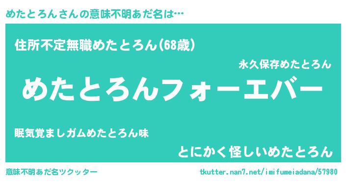 | 胡散臭い通販商品みたいなあだ名 | 『運命の人と巡り会える高級そうな壺…その名も「めたとろん」』 |