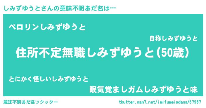 | ヒーロー風カッコイイあだ名 | 『仮面シミダー』『スーパーシミズユウト』 |