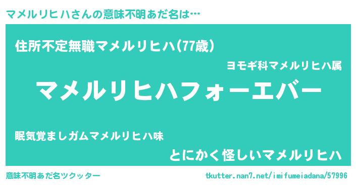 | ヒーロー風カッコイイあだ名 | 『ウルトラマメルリヒハマン』 |