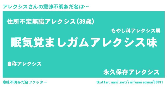 | 欧米人風あだ名 | 『アレクシス・ステッグマイヤー』 |