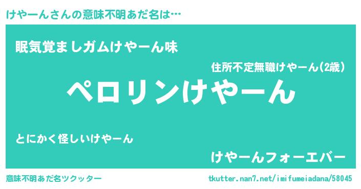 | 男性向けラノベタイトル風あだ名 | 『けやーんの憂鬱』『魔弾の王とけやーん』 |