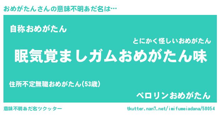 | 男性向けラノベタイトル風あだ名 | 『おまえをオタクにしてやるから、俺をおめがたんにしてくれ! 』 |