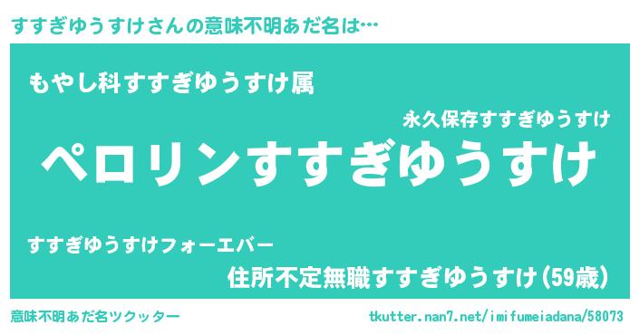 | 男性向けラノベタイトル風あだ名 | 『すすぎゆうすけの憂鬱』 |