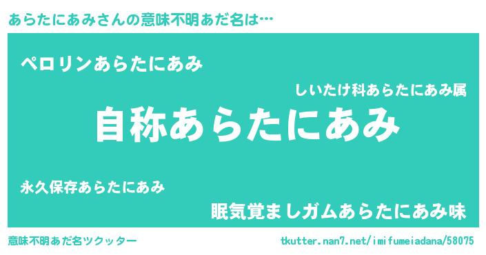 | 胡散臭い通販商品みたいなあだ名 | 『テレビで話題のアガリクス…その名も「あらたにあみ」』 |