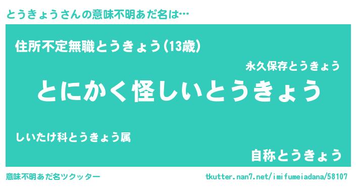| ポケモン風あだ名 | 『ヒトウキョウ』『トーウイ』 |