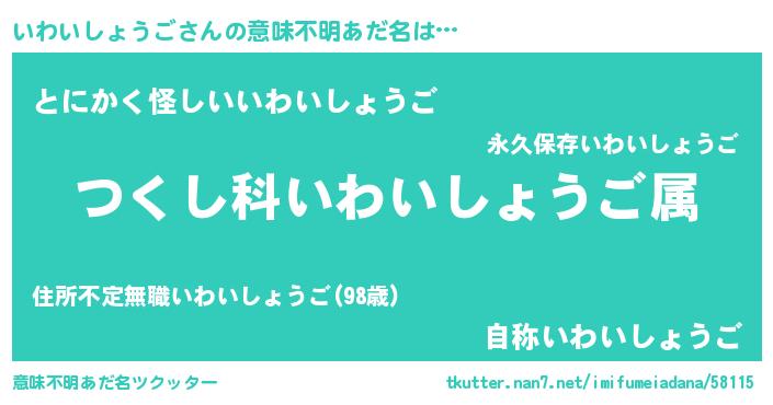 ポケモン風あだ名 | 『イワキング』『ヒイワイショウゴ』 |