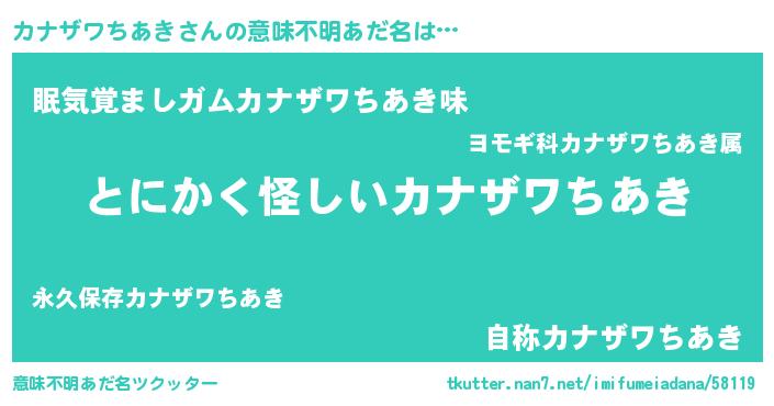| 男性向けラノベタイトル風あだ名 | 『ダンジョンにカナザワちあきを求めるのは間違っているだろうか』 |