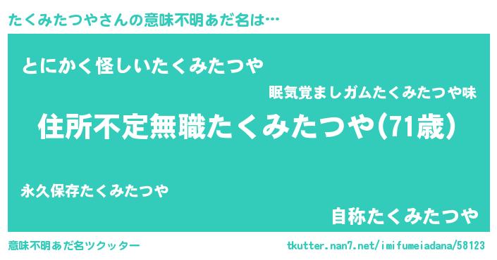 | 欧米人風あだ名 | 『たくみたつや・ステッグマイヤー』 |