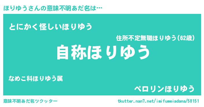 | ヒーロー風カッコイイあだ名 | 『超時空戦士ホリユウ』『幻影騎士ホリ』 |