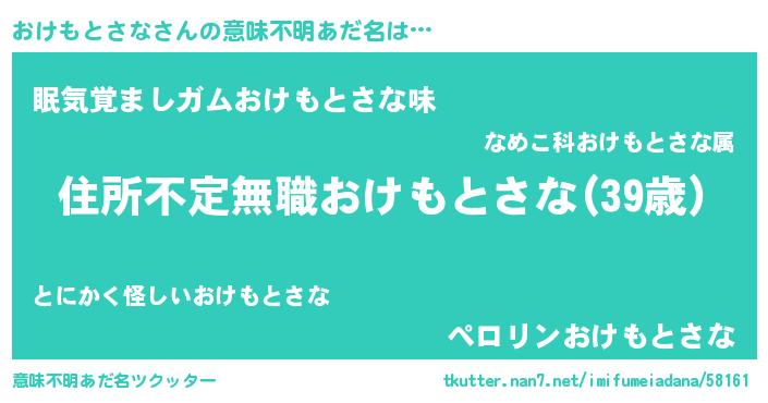 | 男性向けラノベタイトル風あだ名 | 『この素晴らしい世界におけもとさなを!』 |