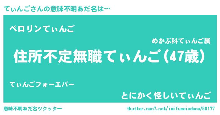 | 胡散臭い通販商品みたいなあだ名 | 『あなたにだけ特別に提供する限定10本のレアな日本酒…その名も「てぃんご」』 |