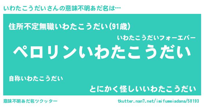 | 男性向けラノベタイトル風あだ名 | 『いわたこうだいの憂鬱』 |