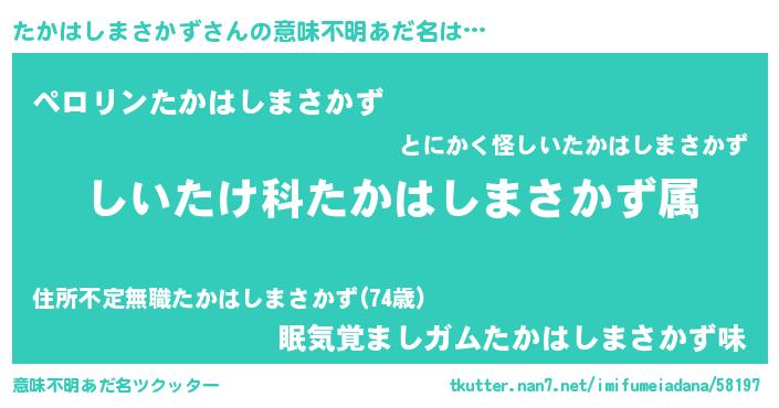 | 胡散臭い通販商品みたいなあだ名 | 『必ず成功するブレスレット…その名も「たかはしまさかず」』 |