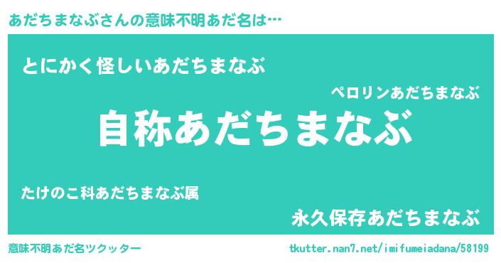 | 女子向けラノベタイトル風あだ名 | 『あだちまなぶストレイドッグス』 |