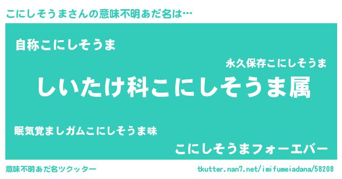 | 料理風あだ名 | 『こにしそうまごはん』 |