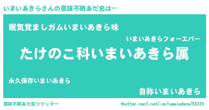 | 肩書あだ名 | 『いまいあきら船長』『いまいあきら大佐』 |