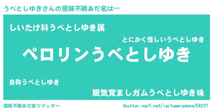 | 胡散臭い通販商品みたいなあだ名 | 『億万長者になれる霊験あらたかなお札…その名も「うべとしゆき」』 |