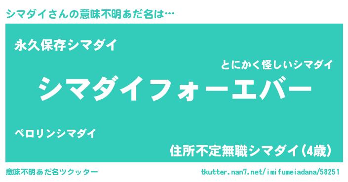 | ファンタジー風あだ名 | 『エターナルシマダイー』 |