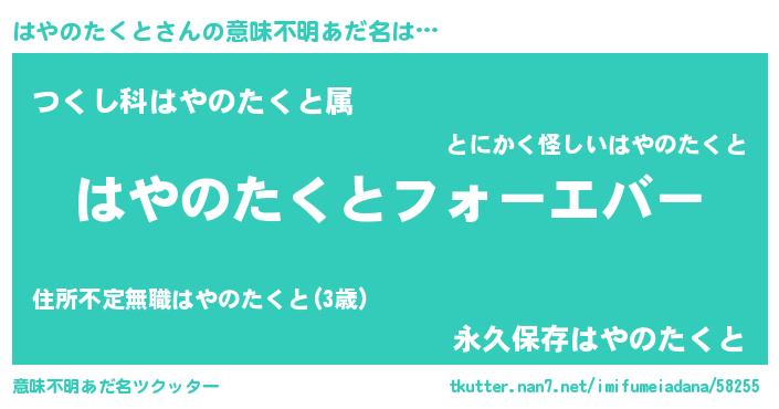 | ファンタジー風あだ名 | 『エターナルハヤノタクトー』 |