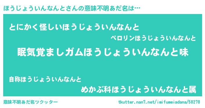 | ヒーロー風カッコイイあだ名 | 『慈愛の使者ほうじょういんなんと』 |