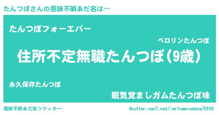 | ヒーロー風カッコイイあだ名 | 『仮面タンダー』『ウルトラたんつぼマン』 |