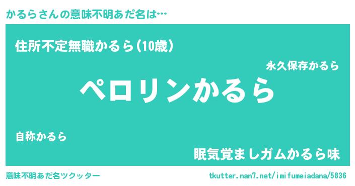 | ヘコむあだ名 | 『かるにー』『かるら(笑)』『豆乳』 |