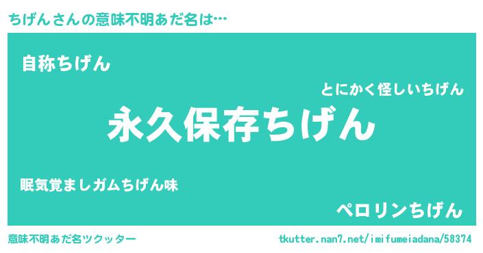 | ヘコむあだ名 | 『ちげん(震え声)』『ちげにゅー』 |