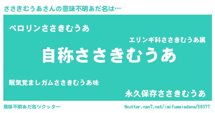 | 男性向けラノベタイトル風あだ名 | 『Re:ささきむうあから始める異世界生活』 |