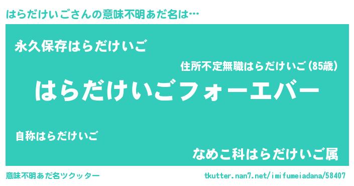 | ファンタジー風あだ名 | 『エターナルハラダケイゴー』 |