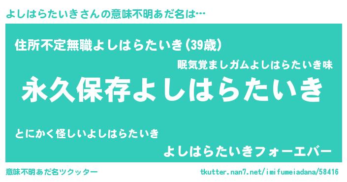 | ヒーロー風カッコイイあだ名 | 『ネオヨシハラタイキ』『仮面ヨシダー』 |