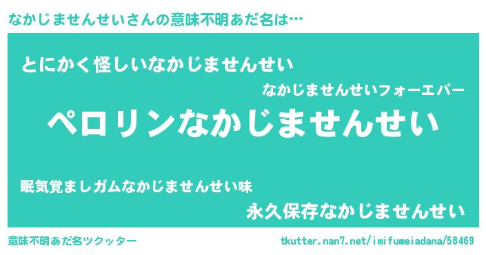 | 男性向けラノベタイトル風あだ名 | 『ナカジマセンセイアートオンライン』 |