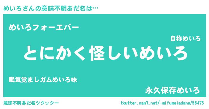 | ポケモン風あだ名 | 『メイゴンZ』『ヒメイロ』『ゼニメイ』 |