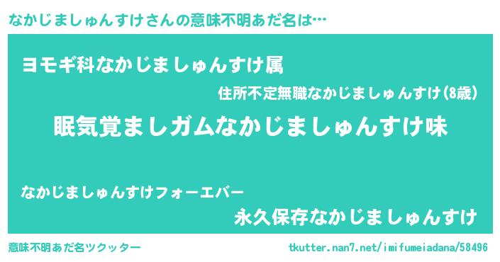 | 男性向けラノベタイトル風あだ名 | 『うちのなかじましゅんすけが世界を掌握している!』 |
