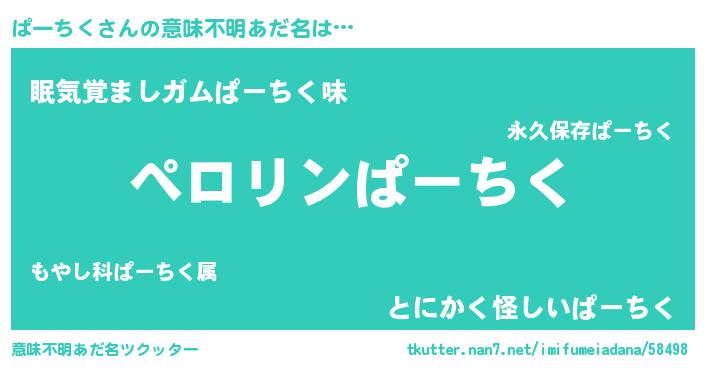 | 男性向けラノベタイトル風あだ名 | 『ぱーちくの憂鬱』 |